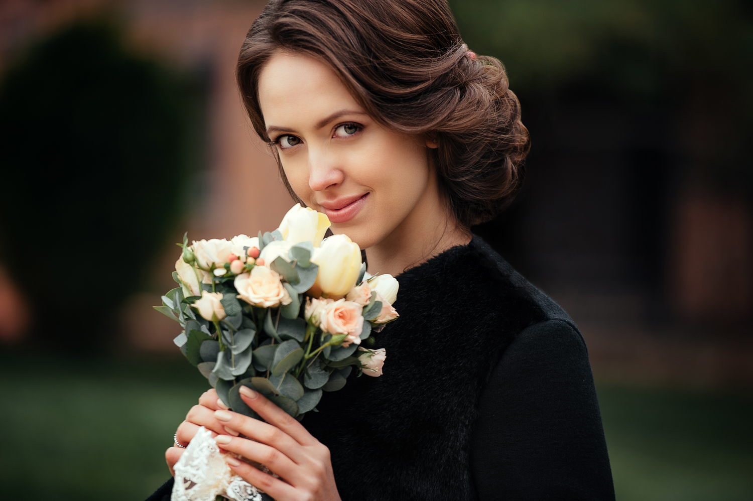 Для серых глаз так же, как и для голубых глаз, больше подходят холодные оттенки , но усилвает синий пегмент теплые оттенки. Только профессионал умеет их сочетать грамотно. При выборе стиля учитывается и внутренняя харизма самой невесты. А вот для карих или для зеленых хороши будут теплые оттенки, но и холодные могут добавить своей пикантности взгляду. Однако дневной и вечерний макияж должны отличаться, поэтому услугами визажиста Светланы Лановой вы можете воспользоваться как перед регистрацией, так и торжественным вечером, тогда образ действительно будет королевским!